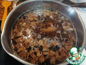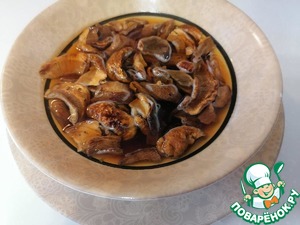 Далее необходимо подготовить белые грибы. Хорошенько промываем и заливаем теплой кипяченой водой. Грибы перед замачиванием должны быть очень хорошо промыты, так как мы будем использовать вместе с грибами водичку, в которой они замачивались. Этот прием позволит придать супу более интенсивный грибной вкус и насыщенный красивый цвет.