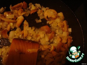 Распускаем лучок с грибами (если есть возможность-берите японские) я брала опята...