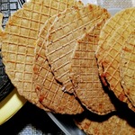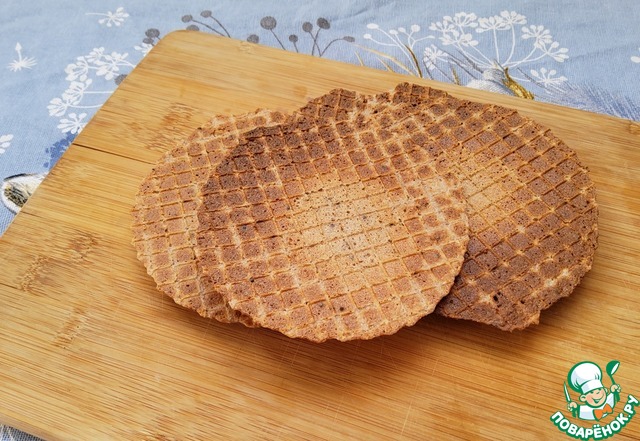 В идеале, если вы будете выпекать в вафельнице для тонких вафель. Если такого гаджета нет, можно размазать тесто лепешечками по смазанной пекарской бумаге и испечь, или испечь единым куском, а затем поломать.