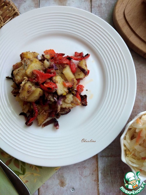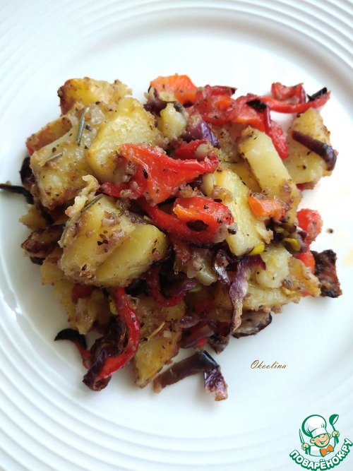 Картофель с пряными специями и овощами: болгарский перец; лук; чеснок, обваленный в белых сухарях и оливковом масле, запечённый в духовке. Это практически самостоятельное блюдо, но можно его использовать и как гарнир к какому-то мясу или рыбе. Подойдёт и на праздничный стол. Это очень вкусная картошка!