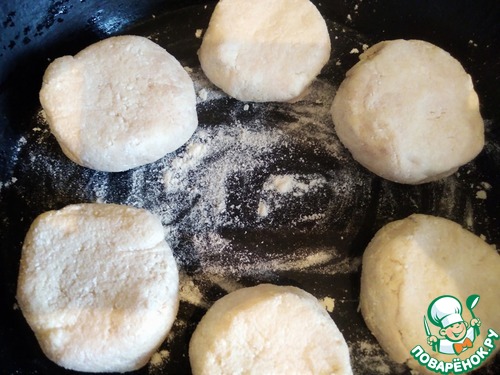 Раскатываем тесто колбаской, нарезаем кружочками 4-5см, формируем сырники, у меня получилось 6шт.
