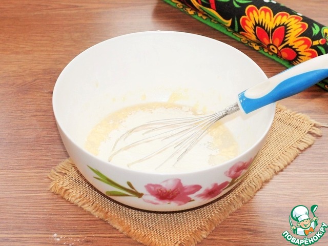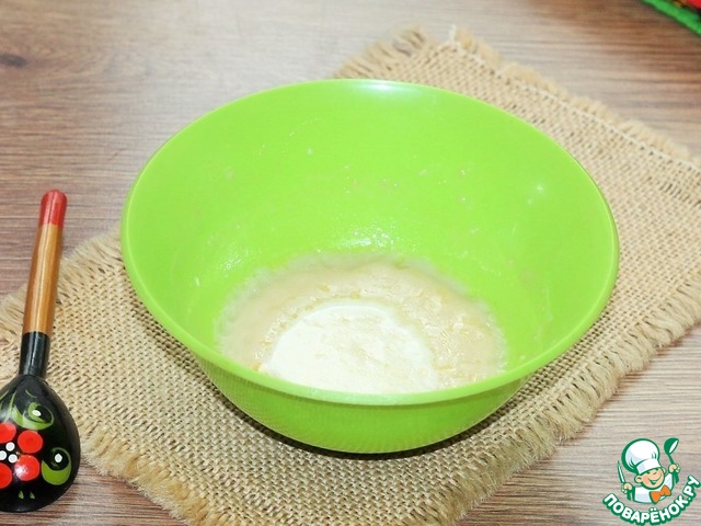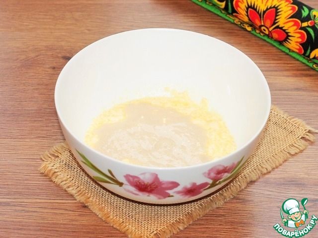 3. В масляную смесь выливаем пенную опару и перемешиваем.