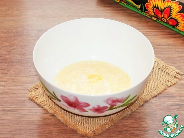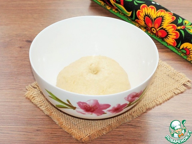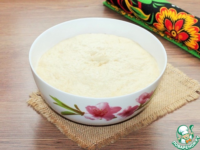 6. Закрываем миску пленкой и ставим в теплое место для подъема теста в 2,5 раза.