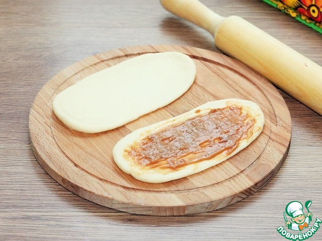 9. Одну лепешку смазываем вареной сгущенкой.