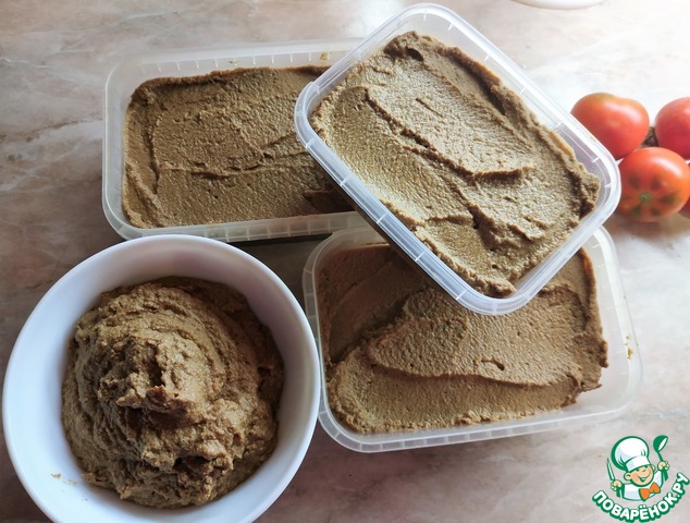 Если вдруг решите тоже приготовить и в морозилку, то советую сверху чуть-чуть полить растопленным маслом. Это делать не принципиально, но масло не дает паштету темнеть и соответственно смотрится эстетичней..