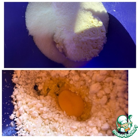 Творог пробить миксером вместе с сахаром. По одному добавлять яйца не переставая работать миксером.