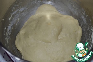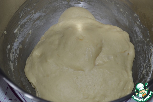 Замесить мягкое крутое тесто с помощью насадки "крюк" или руками.