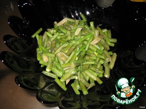 Зеленую фасоль (замороженную) отварить в подсоленной воде до готовности.