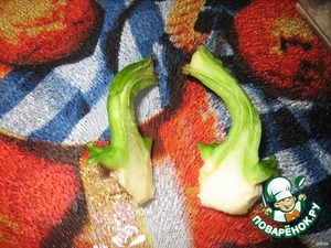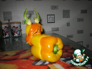 Для изготовления Бычка нам понадобятся два перца разных цветов с хвостиками.
