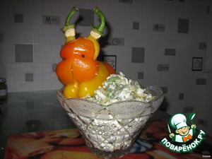 Этот вкусный салат я обычно готовлю просто к ужину, но так как в нем нет мяса, думаю, он понравится Бычку на Новогоднем столе. Идея изготовления Бычка не моя, взята из журнала "Люблю готовить". Тренировалась перед Новым годом, решила поделиться, может кому-то пригодится.