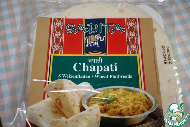 Лаваш нужен плотный, похожий на мексиканские тортильи. У меня были чапати, но это почти то же самое, что и тортилья.