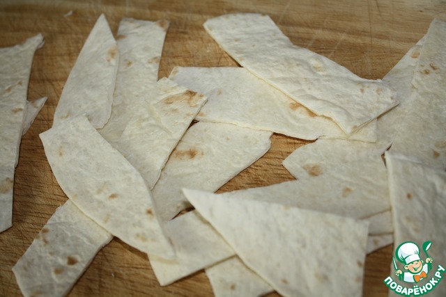 - Лаваш (подсохший и плотный или тортильи) — 300 г