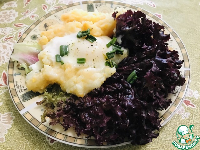 Описание: Нет с утра ничего лучше, чем поджарить оставшуюся от ужина картошку пюре, разбить туда яйцо и посыпать свежей зеленью.
