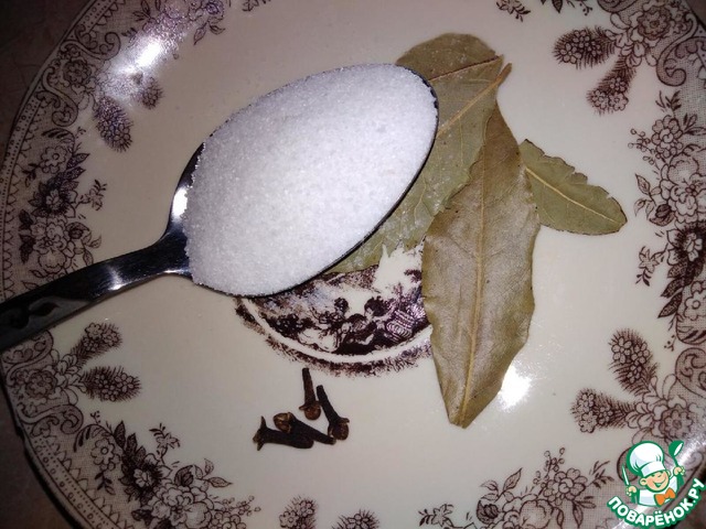 Подготовить лавровый лист (3-4 шт.), гвоздику (4 шт.), соль (1 ст. л. с небольшой горкой) -
