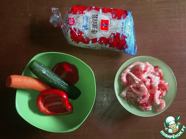 Ингредиенты для «Фунчоза с овощами и креветками»: