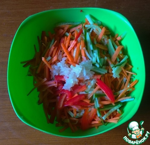 Всё перемешали и отставили в сторону. Пусть овощи дадут сок. -