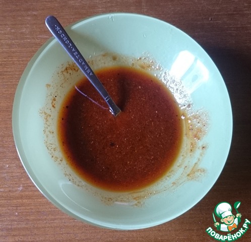 Смешиваем подсолнечное масло, соевый соус, уксус.