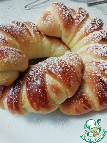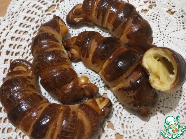 Предлагаю приготовить рогалики из сдобного дрожжевого теста с начинкой из заварного крема. Рогалики очень мягкие, нежные, с вкусной молочной начинкой! Прекрасно подойдут как для праздничного стола, так и для домашнего чаепития, понравятся и взрослым, и детям! Угощайтесь!
