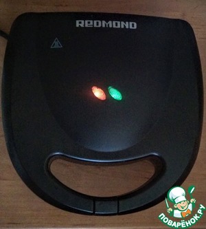В мультипекарь Redmond вставить панели "гриль". Включить мультипекарь, дождаться когда загорится зелёный индикатор и можно начинать готовить. Рулетики смазать силиконовой кисточкой растительным маслом и положить на нижнюю панель мультипекаря так, чтобы они не касались друг друга.