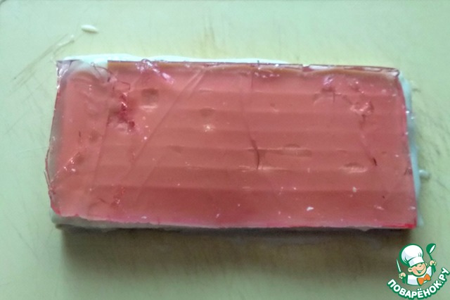 Формы для мультипекаря "гриль" застелить пищевой плёнкой. Залить в них желе и убрать на холод для застывания. Конда желе застынет, переложить желе в пищевой пленке на другое блюдо и оставить на холоде.