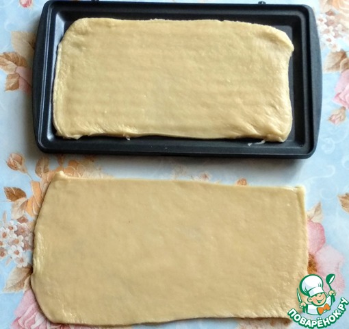 Разделить тесто, примерно, на 10 частей. Каждую раскатать как можно тоньше. Вырезать прямоугольник, размером с форму мультипекаря "гриль". Из обрезков тоже раскатать прямоугольники.