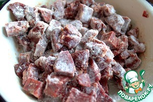 Нарезать кусочками и обвалять в муке или крахмале.