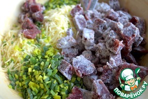 Высыпать в тесто и тёртый сыр тоже.