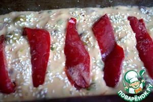 Болгарский перец втопить дольками, посыпать кунжутом.