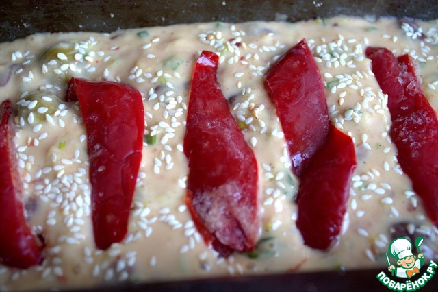 Можно нарезать болгарский перец, смешать тесто.