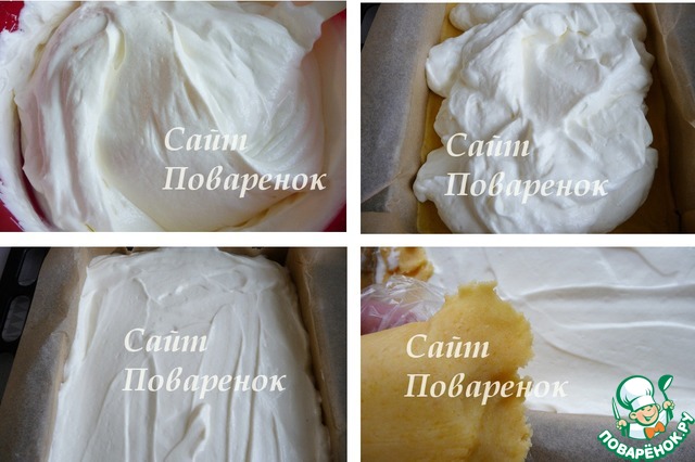 Взбитые белки частями вводить в йогуртово-сметанную начинку.
