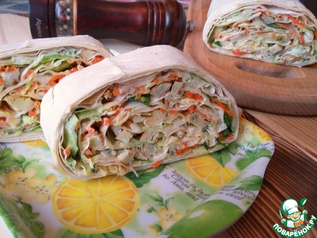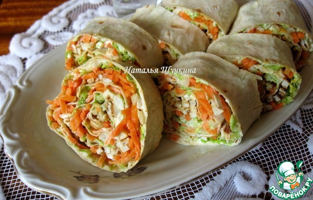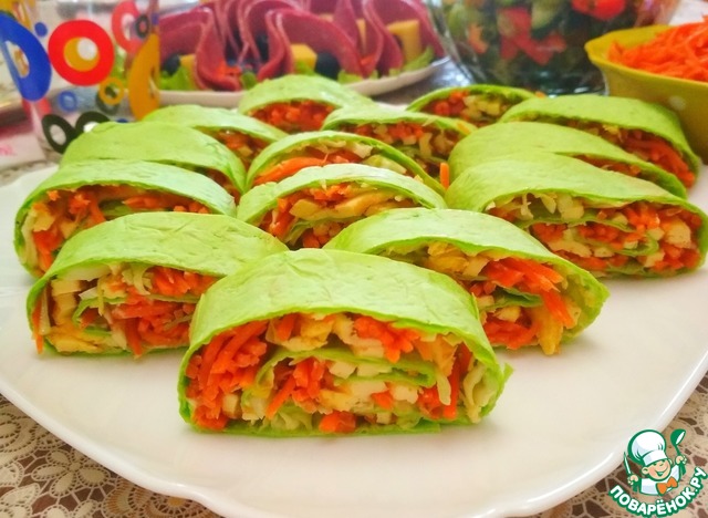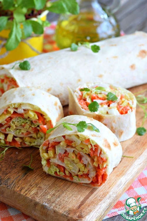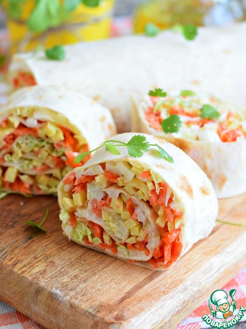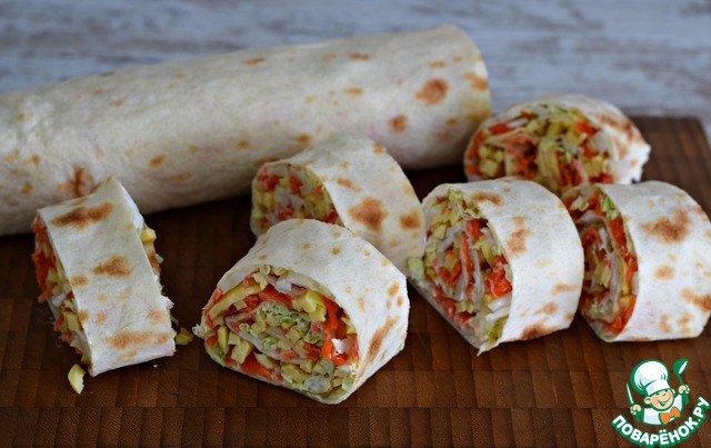 Рецепт «Закусочный рулет из лаваша с овощами»: