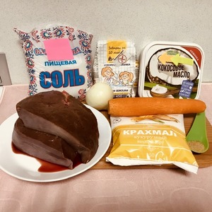 - Печень говяжья (Беру замороженную. Перед приготовлением даю оттаять часа три.) — 500 г