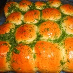 Пока пампушки ещё горячие мы их смазываем подготовленной чесночно-укропной смесью.