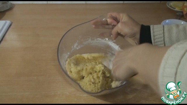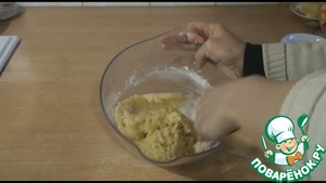 Должно получиться мягкое густое тесто, замешивать его не нужно, достаточно размешать ложкой.