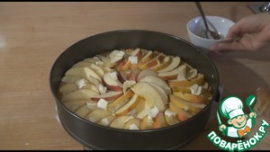 Сверху яблок выкладываем маленькие кусочки сливочного масла.