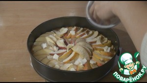 Смешаем сахар с ванилькой и посыпаем яблоки. Если любите корицу, можно и её добавить. Отправляем в духовку ещё на 15-20 минут.