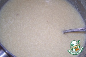 желтки растереть с сахаром до бела, потом понемногу подливаем тёплое молоко и размешиваем.