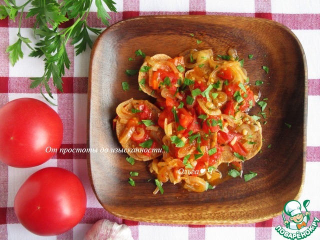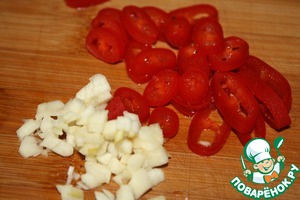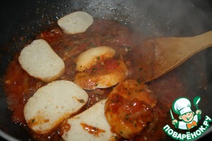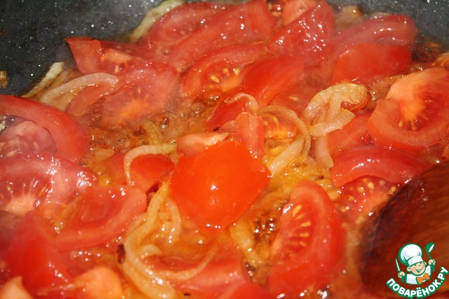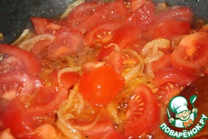 Добавить помидоры и обжаривать вместе, пока помидоры не размягчатся.