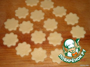 Раскатать- примерно 2-3 мм. должен быть слой коржа. Вырезать печенюшки