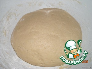 Выливаем все в миску, добавляем соды на кончике ножа, сыпем муку и замешиваем тесто, похожее на размягченный пластилин.