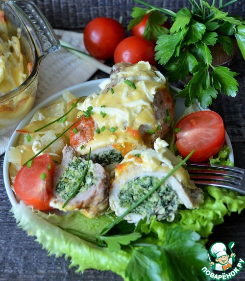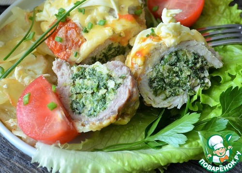 Рецепт «Мясные рулетики со шпинатом и яйцом»: