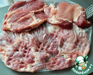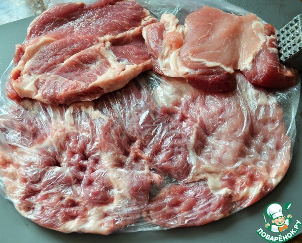 Шейку вымыть, обсушить, разрезать на 3 стейка, отбить.