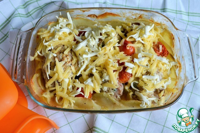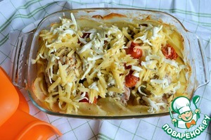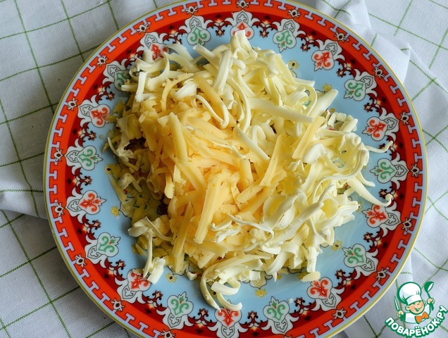 Через 25 минут посыпать сыром, запекать ещё 10 минут при 220 - 240 градусах, желательно под грилем.