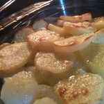 6)Каждый слой нужно смазать растопленным сливочным маслом, немного посолить и поперчить. Остатки сливочного масла выливаем на картофель.