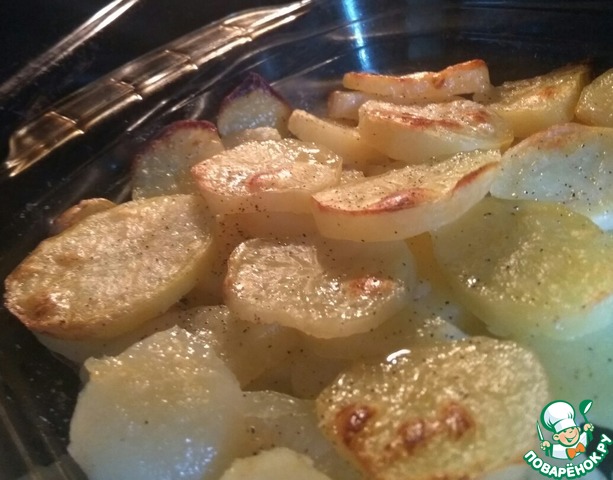 5)Смазывания форму для запеканки и выкладываем в нее слоями картофель.