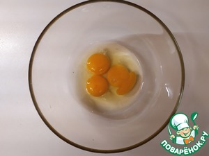 Берём 2 яйца и 1 желток.