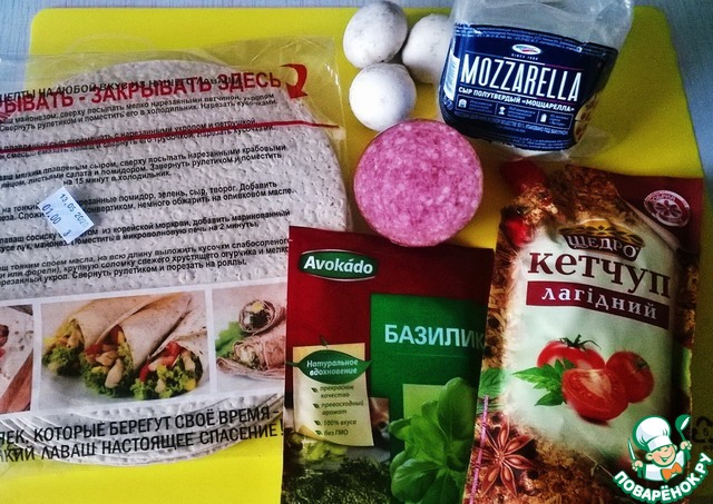 Ингредиенты для «Пицца из лаваша за 10 минут»: