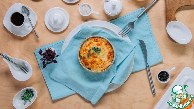 Подавайте блюдо к столу горячим с аппетитной сырной корочкой.