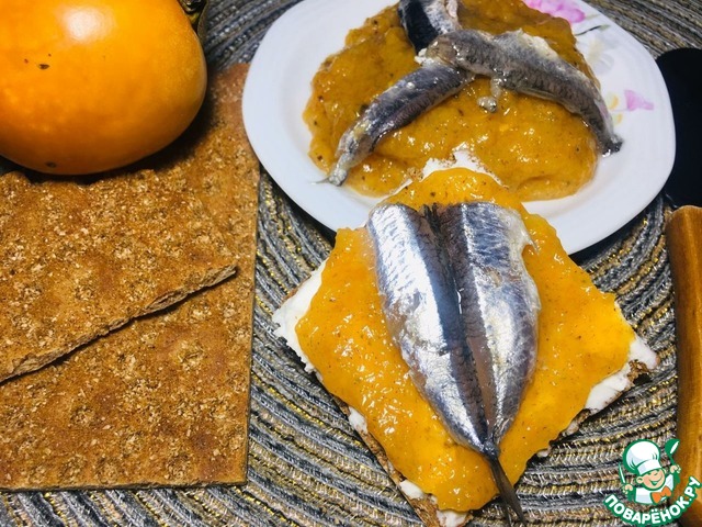 Рецепт «Бутерброд с хурмой и анчоусами»: