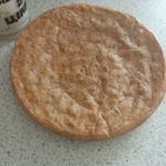 При выпечке тесто поднялось примерно ещё на 1 см. Явного запаха чеснока нет, но он придал лепёшке приятную нотку вкуса. По желанию чеснока можно положить больше! Лепёшка мягкая. Нарезаем на куски. Я резала прямо горячую на завтрак.